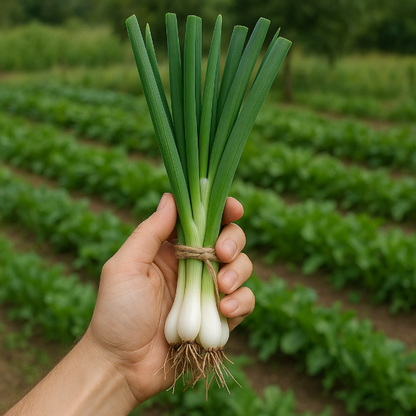 –1 atado de cebolla de verdeo agroecológica, aproximadamente 200 gramos.